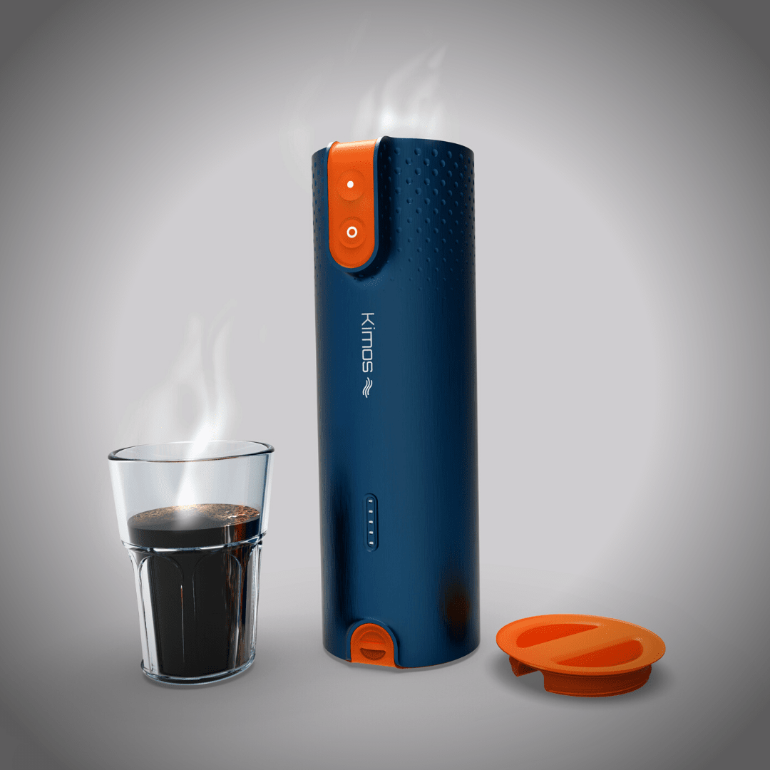 Kimos is a smart, safe rechargeable battery-powered bottle that boils water numerous times with a press of a button. It also has a safety - patented leak protection mechanism.